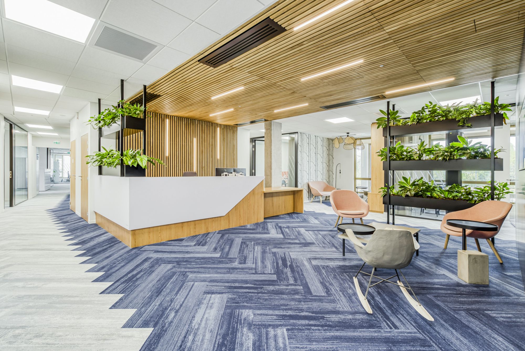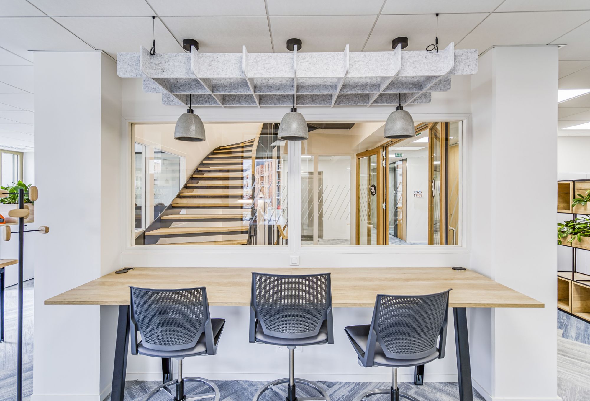 Dans une architecture de béton élégante et contemporaine conçue par le cabinet Z Architecture, ce projet porte sur 5 000 m², dont 2 500 m² pour le siège, aménagé par nos équipes lyonnaises. Une conception au service des nouvelles pratiques collaboratives et de la qualité de vie au travail.