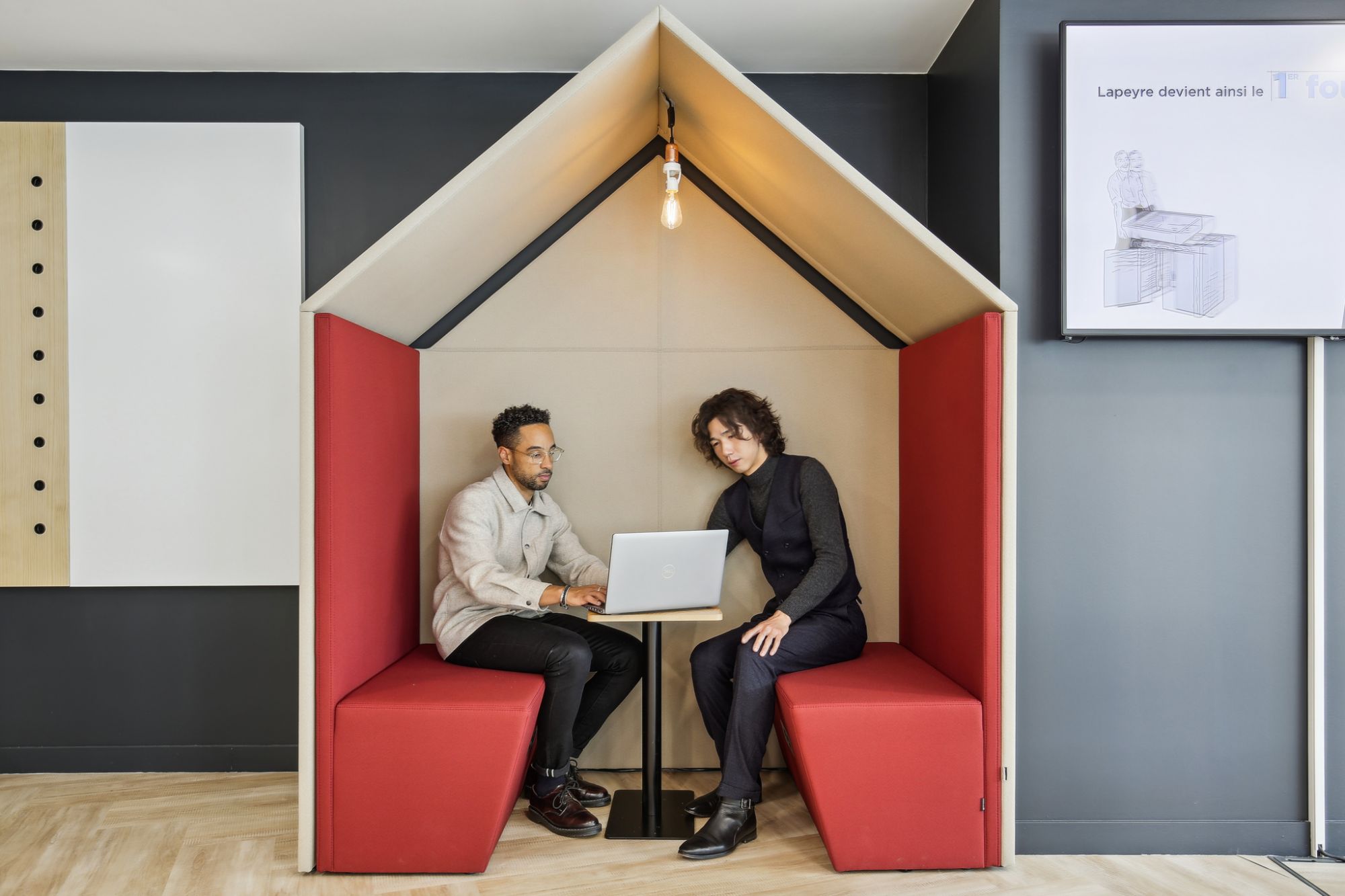 Enfin, au-delà de concilier contraintes techniques propres aux IGH, morphologie en demi-arc de cercle spécifique à Canopy et budget restreint, la réponse architecturale proposée par Kardham se distingue par un design sur-mesure intemporel et sobre, emblématique de l’univers de marque de Lapeyre. A noter qu’une partie du mobilier a été fabriqué par Lapeyre, dans l’usine historique du groupe, Menuiseries du Centre située dans le Cantal.